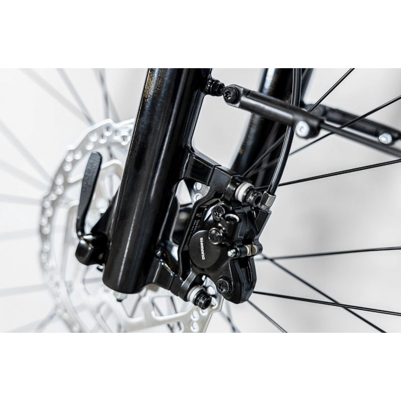 - Les roues de 27,5 pouces rigides avec axes traversants garantissent un contrôle sûr et stable tandis que les pneus de gros volume contribuent au confort du vélo.